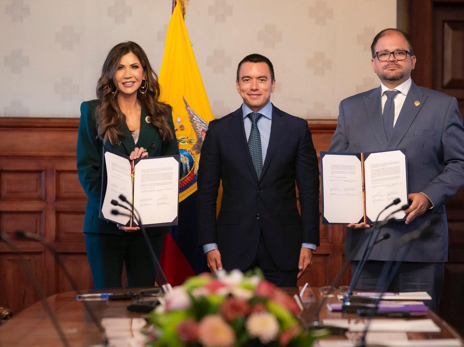 El acuerdo se firmó recientemente en presencia del presidente de Ecuador, Daniel Noboa, y la secretaria de Seguridad Nacional de EEUU, Kristi Noem. En el encuentro también participaron la canciller ecuatoriana Gabriela Sommerfeld; el ministro del Interior, John Reimberg, y el ministro de Defensa, Gian Carlo Loffredo.