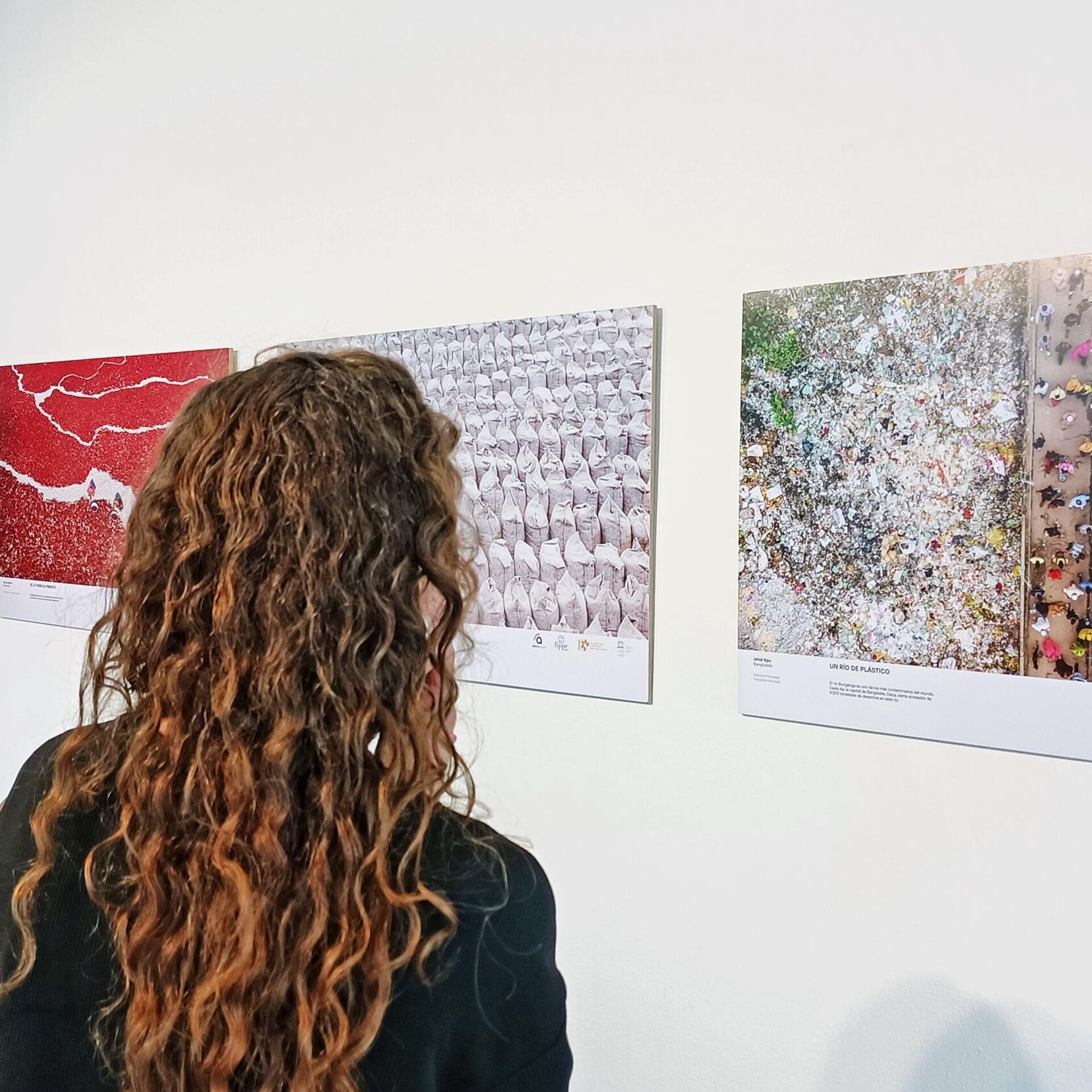 Una visitante observa fotos en la exposición del Concurso Internacional de Fotoperiodismo Andréi Stenin en la ciudad argentina de San Juan.